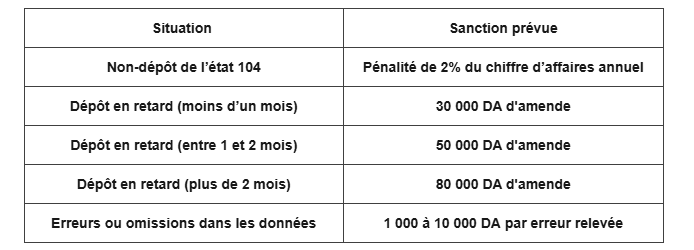 Ne pas se conformer à l’état 104 expose votre entreprise à des risques légaux significatifs. En effet, l’article 194 du Code des impôts directs prévoit des sanctions précises pour toute omission ou erreur concernant la déclaration de vos clients.